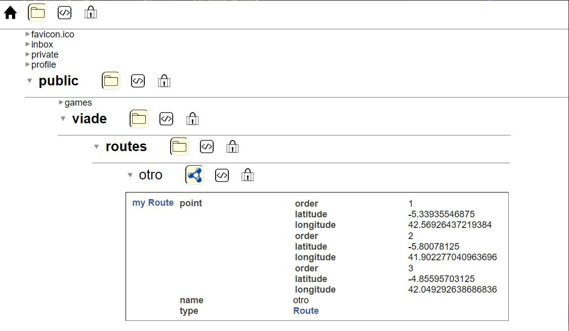 In RDF terms, the points on your route are blank nodes (i.e. they donāt have a URL), whereas the route itself is a named node (i.e. it has a URL: currently http://example.org/myRoute, though it shouldāve been https://aitorllanos99.solid.community/public/viade/routes/otro#myRoute).